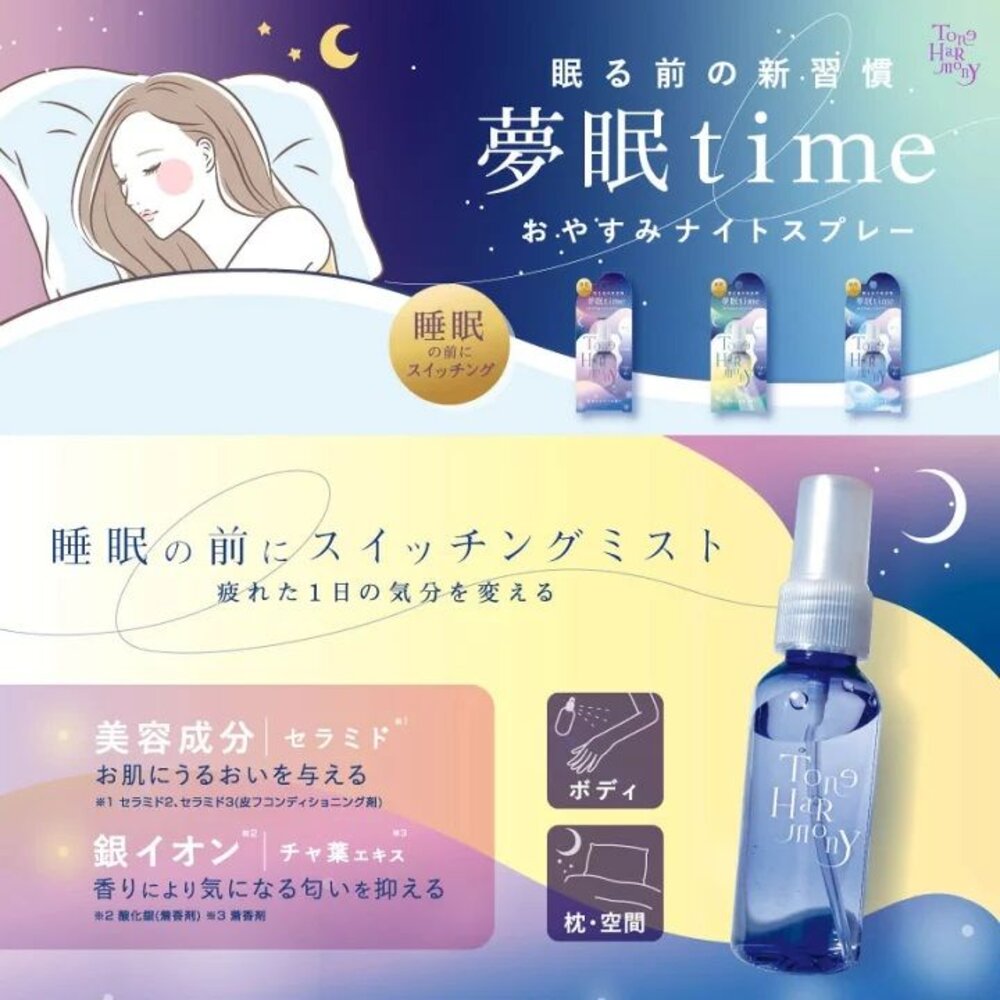 以睡眠為主題的香氛噴霧,可用於身體和枕頭! 具有放鬆和恢復疲勞的芳香