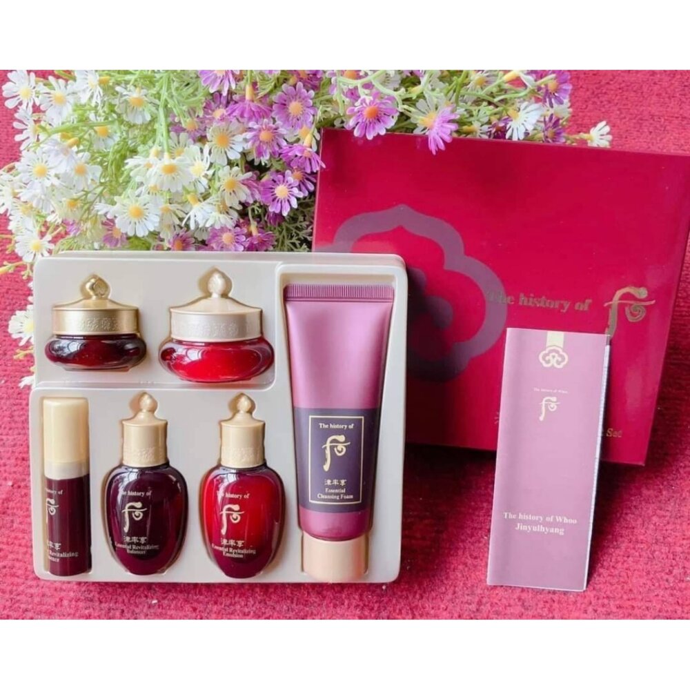 ✅內容物:津率享精華液5ml、眼霜4ml、爽膚水20ml、面霜10ml、滋養乳20ml、潔面乳40ml
