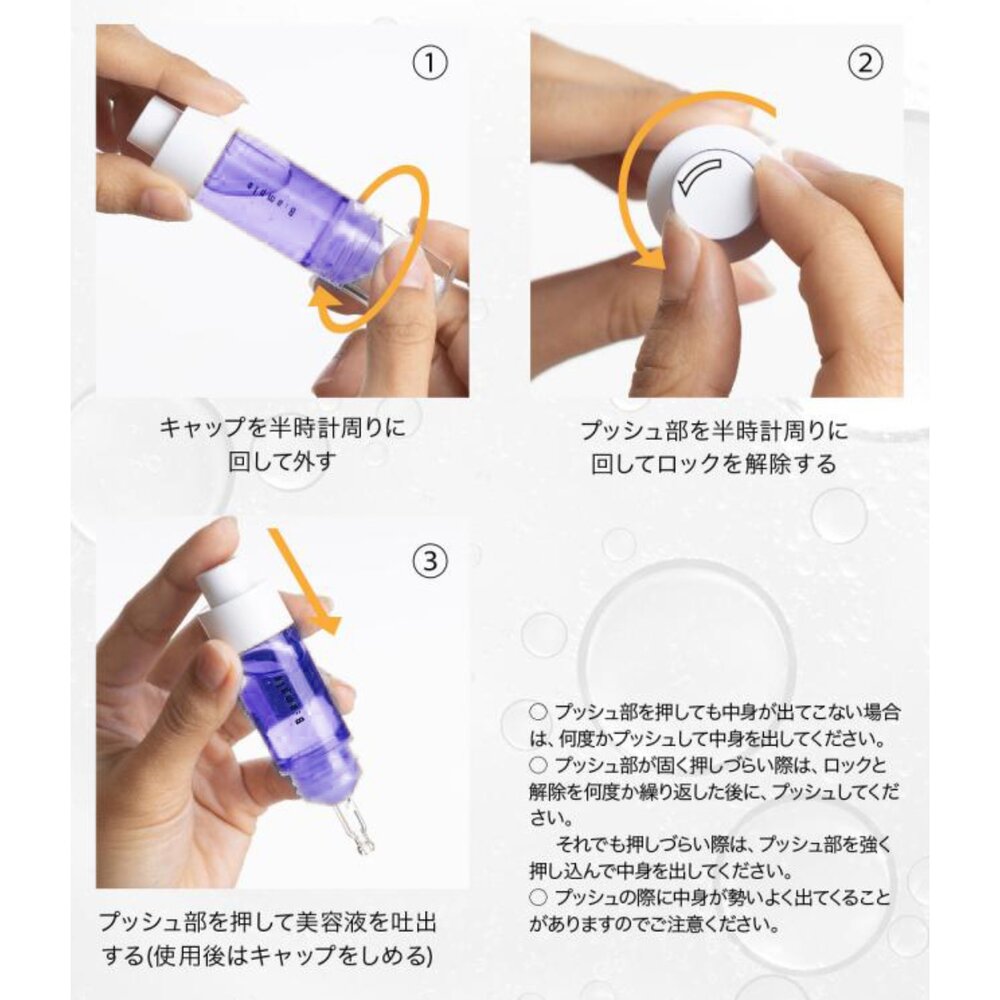 使用方法:早晚潔面後,取適量原液塗抹於臉部。輕輕按摩至完全吸收,建議搭配乳霜使用,效果更佳。